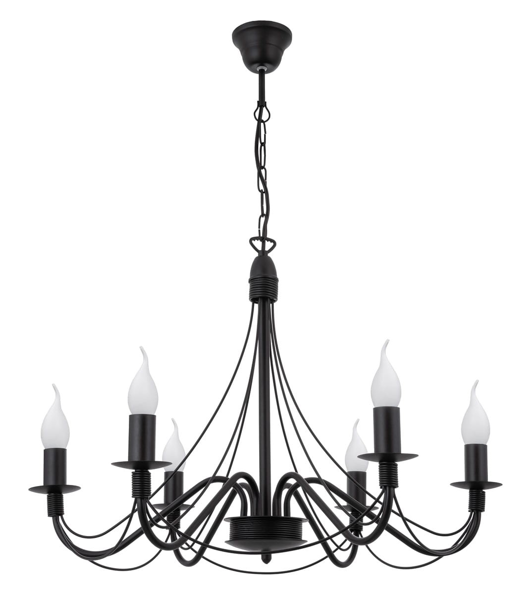 Świecznikowy żyrandol do salonu. Stylowy żyrandol HORTENSJA, piękny majestatyczny korpus wykończony żarówkami typu płomyk zrobi wielkie wrażenie. Żyrandol od polskiego producenta stylizowany na klasycznych kutych żyrandolach idealny do salonu, czy sypialni. Doskonale sprawdzi się również w jadalni jako lampa nad stół.
