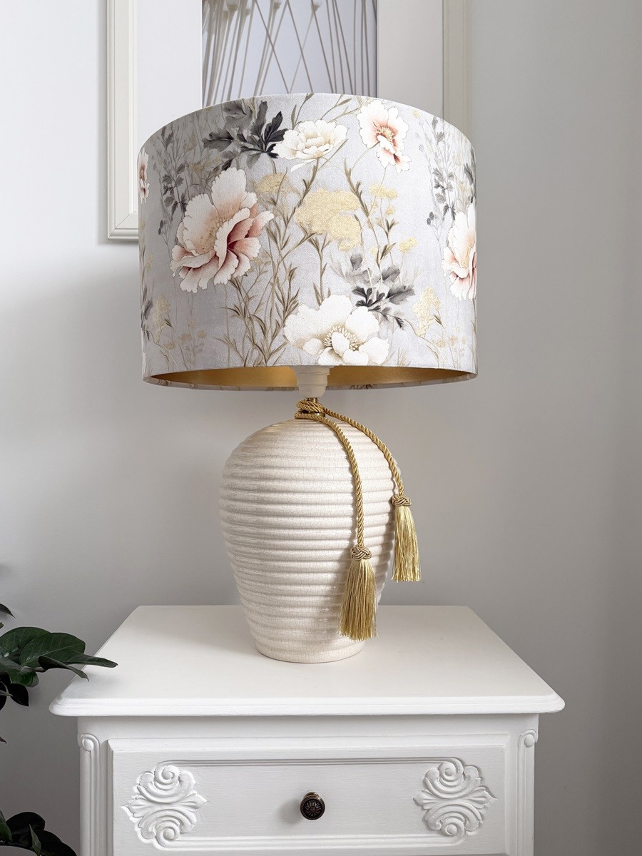 Walec do lampy w kolorze szarym z delikatnym motywem kwiatowym