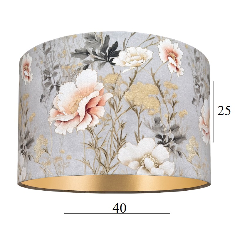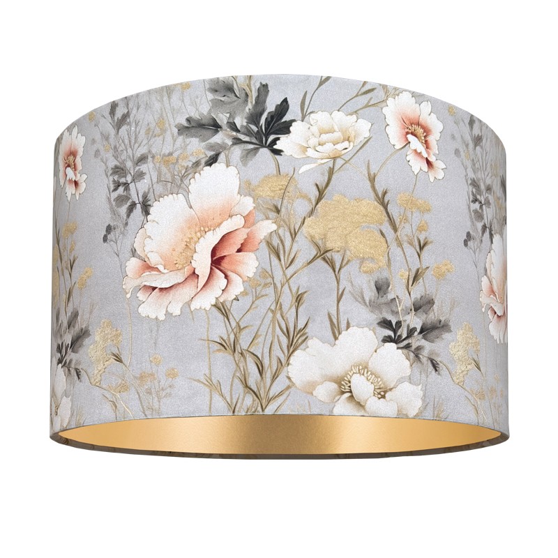 Szary abażur do lampy walec 40 cm z weluru w kwiaty