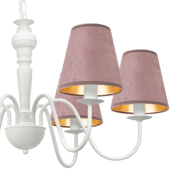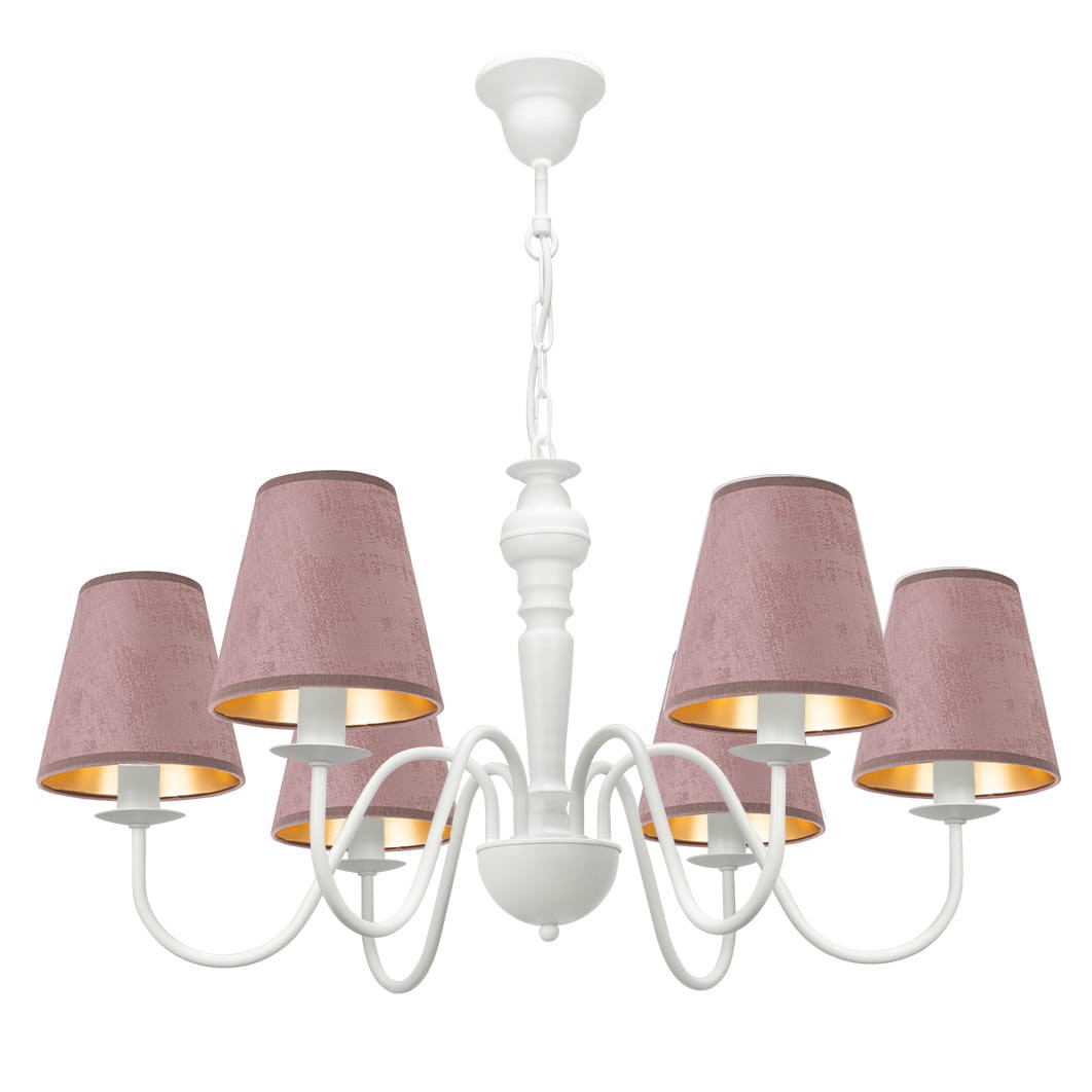 Tradycyjny żyrandol biały z różowymi abażurami z weluru GOLDSUN AB 1335G/26/52 6-ramienny
