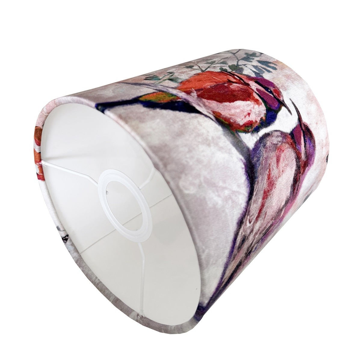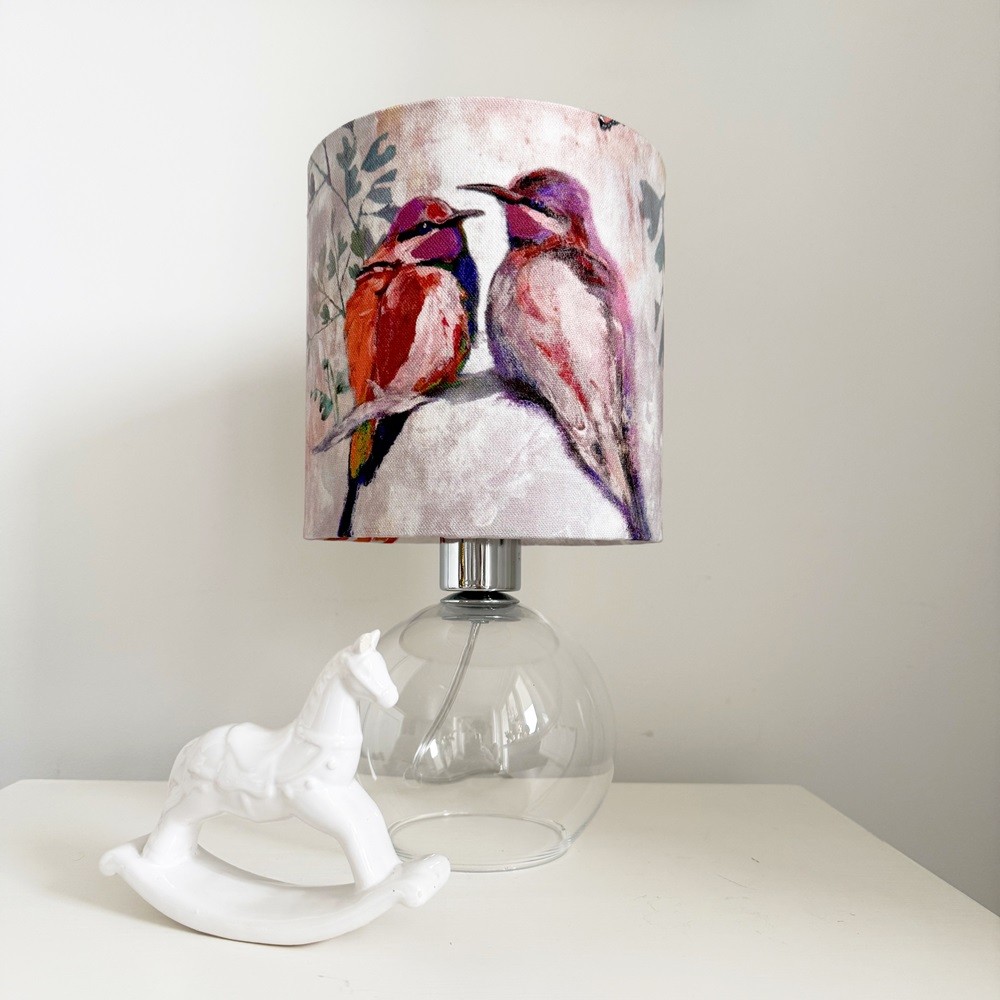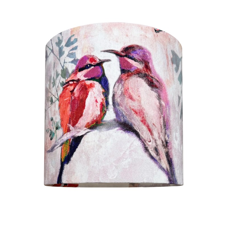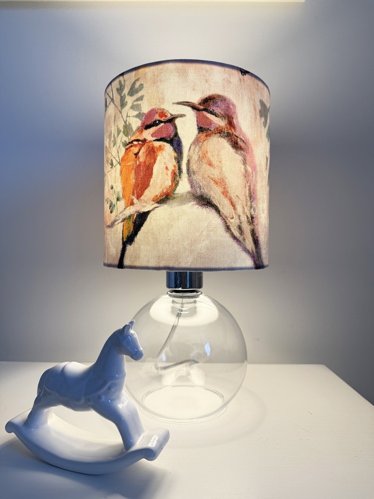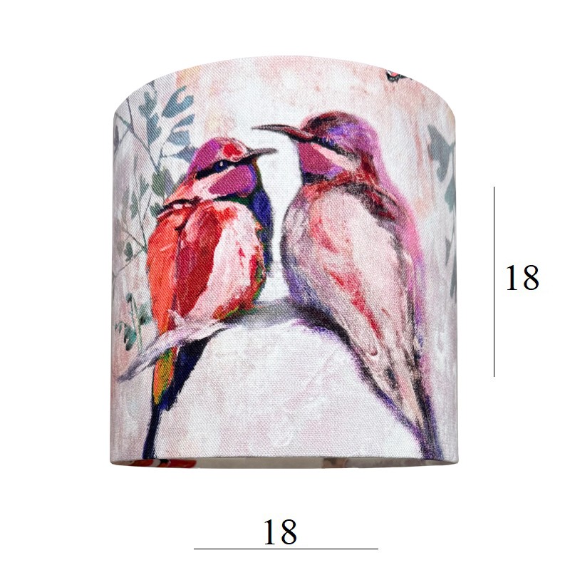 Ten piękny abażur w kształcie walca to propozycja dla osób, które poszukują niewielkiego, ale wyrazistego dodatku do swojego wnętrza. Artystyczny nadruk z motywem ptaków nadaje mu oryginalności i subtelnego, dekoracyjnego charakteru, który doskonale wpisuje się w klasyczne aranżacje wnętrz. Delikatna kolorystyka w odcieniach różu sprawia, że abażur harmonijnie współgra z różnymi stylami od skandynawskiego, przez boho, aż po klasyczne wnętrza.