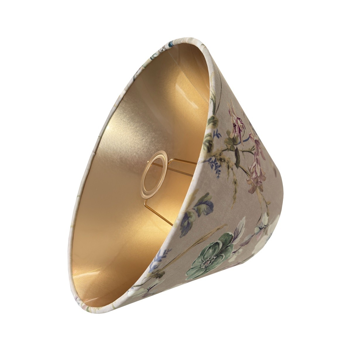 Welurowy abażur do lampy w kształcie stożka 30cm w kwiatowy wzór idealny do lampki stołowej, z mocowaniem na oprawkę E27, pięknie wykonany z delikatnego materiału podklejonego cieniutką białą pleksi. Przepiękny delikatny kwiatowy wzór w postaci kwiatów i ptaszków na beżowym tle zwraca uwagę i stwarza romantyczny nastrój we wnętrzu. Abażur doskonale wpisze się w klimat klasycznych i prowansalskich wnętrz, nadając im szyku i przytulności.