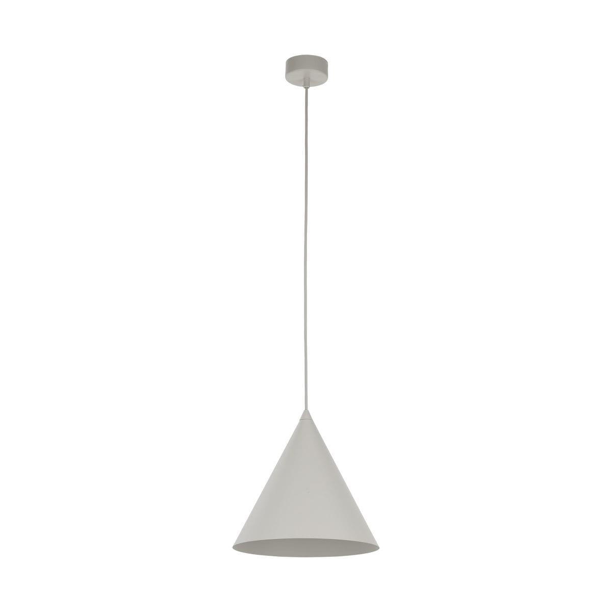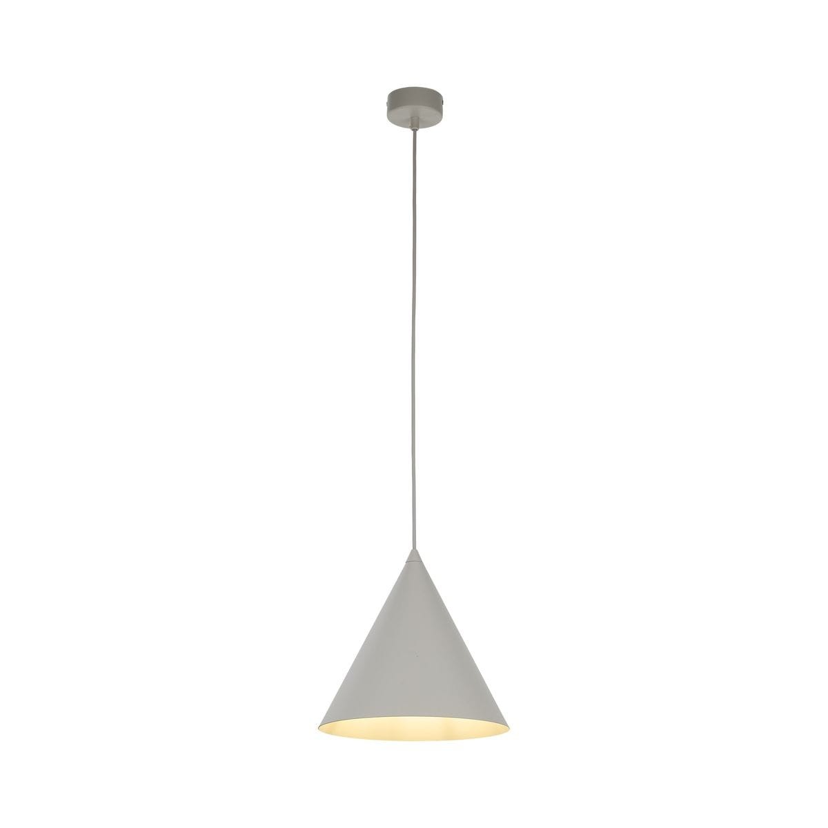 Wisząca lampa do kuchni w kolorze szarym, w kształcie stożka. Lampa jest wykonana ze stali i doskonale współgra z minimalistycznymi, loftowymi przestrzeniami.. Tego typu lampa nie tylko oświetla pomieszczenie, w którym się znajduje, ale również podkreśla jego styl.