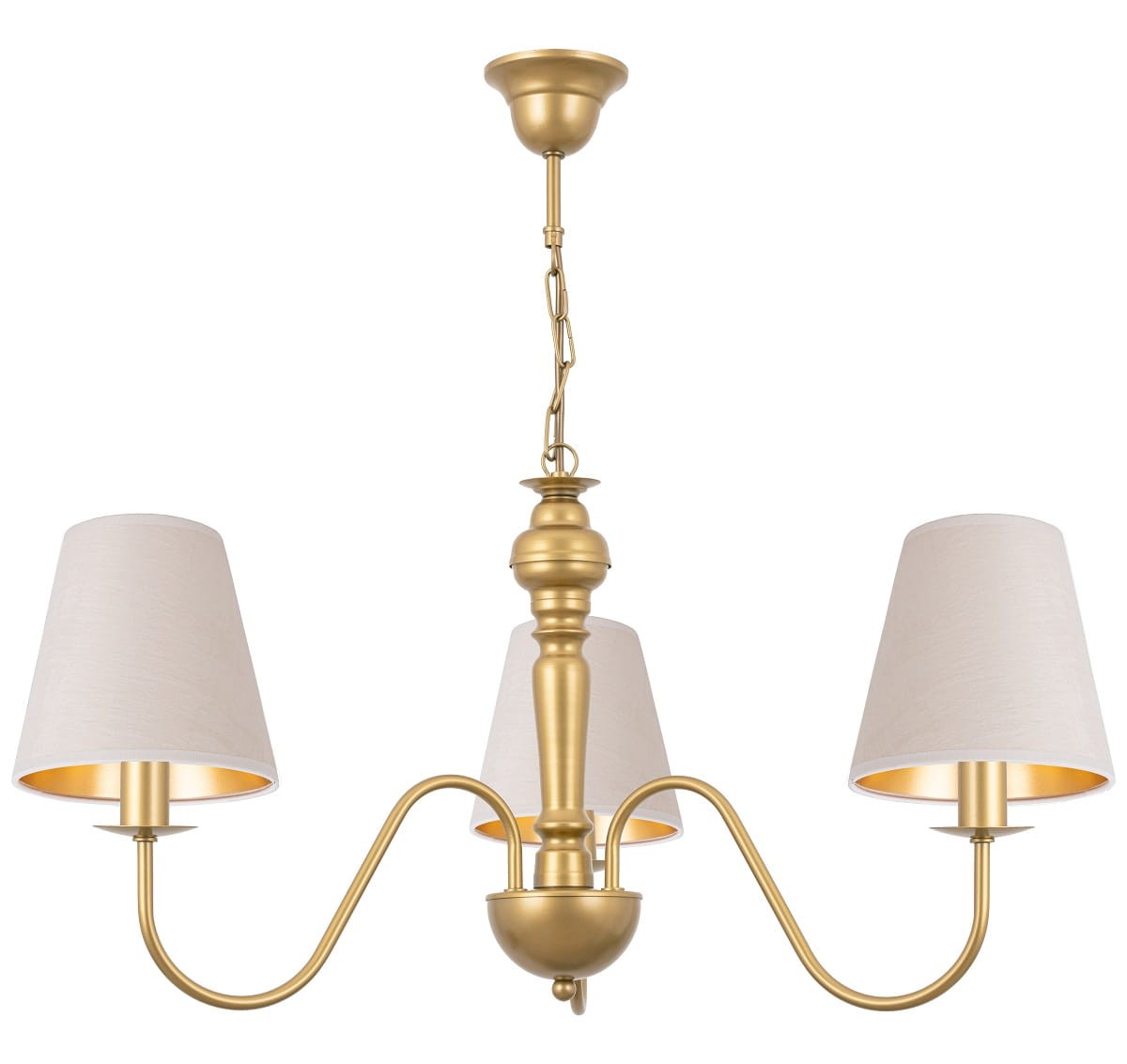 Złoty klasyczny żyrandol to model, który przypadnie do gustu miłośnikom klasycznych rozwiązań. Złoty stelaż wygląda elegancko, a dzięki stylowym abażurkom z weluru staje się niepowtarzalny. Taka lampa z pewnością będzie niekwestionowaną ozdobą każdego salonu, sypialni czy jadalni.