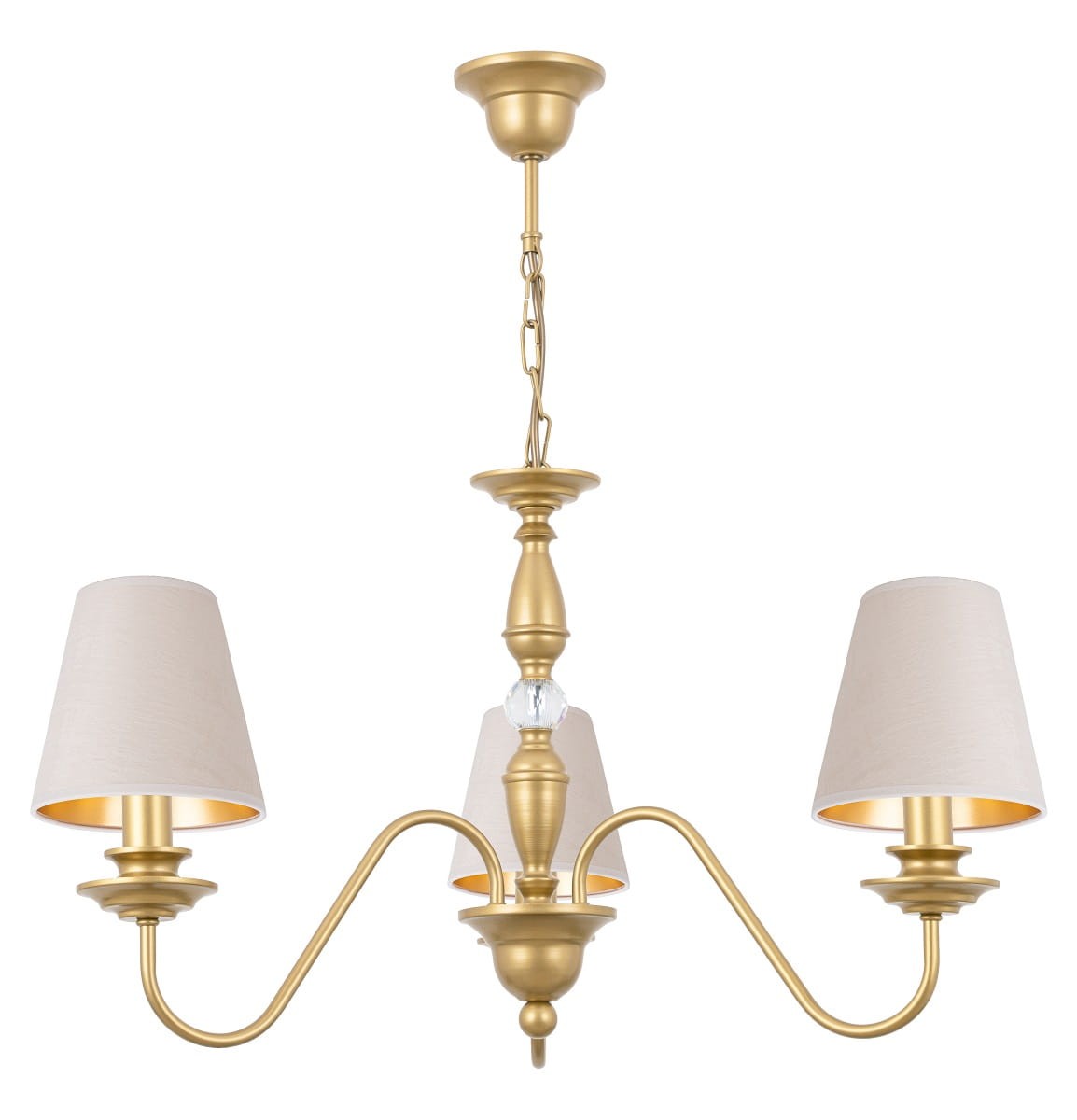 Złoty żyrandol do salonu to model, który przypadnie do gustu miłośnikom klasycznych rozwiązań. Złoty stelaż wygląda elegancko, a dzięki stylowym abażurkom z weluru staje się niepowtarzalny. Taka lampa z pewnością będzie niekwestionowaną ozdobą każdego salonu, sypialni czy jadalni.