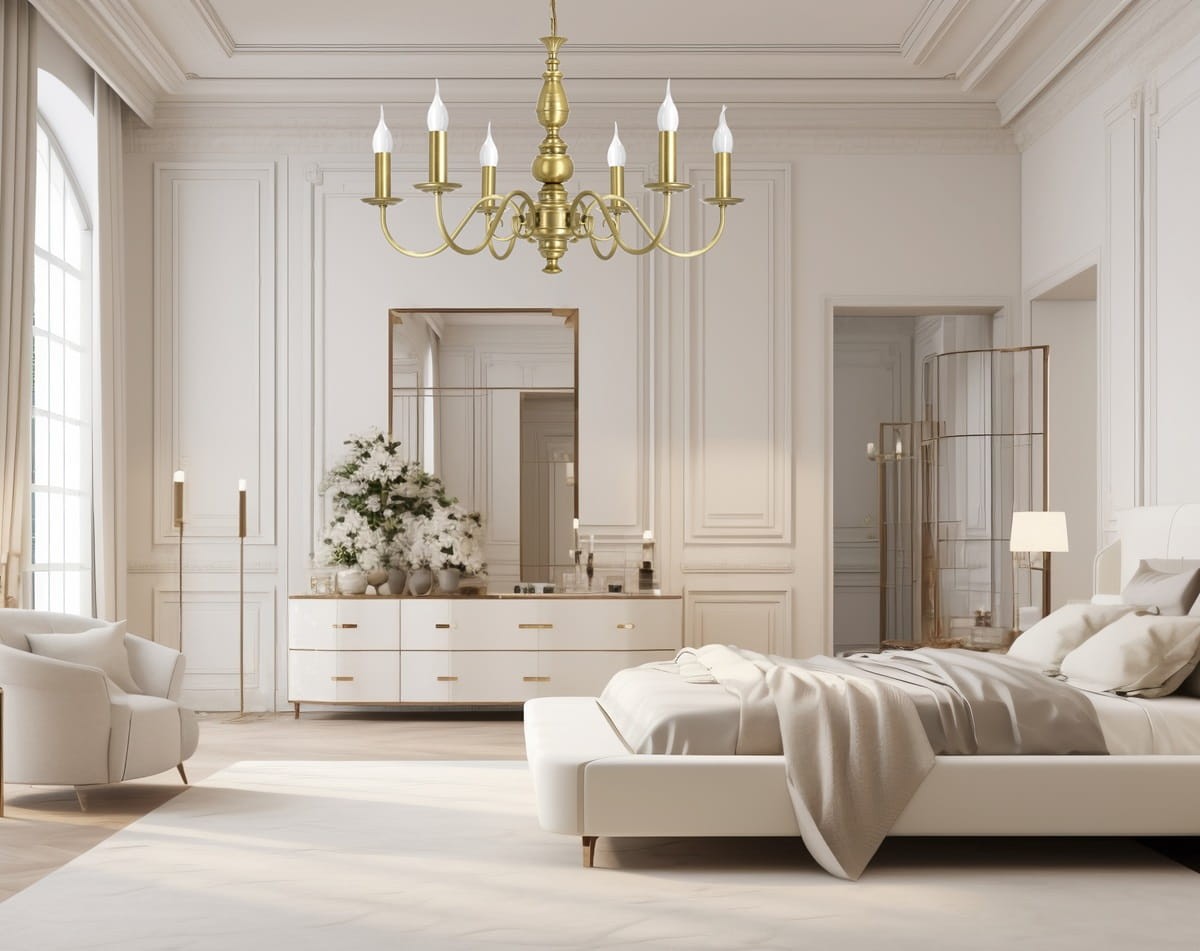 Złoty żyrandol w klasycznym stylu AMELIA to nasza propozycja do eleganckich salonów, czy sypialni. Żyrandol do pomieszczeń nieco większych, zarówno ze względu na 6 punktów światła jak i na jego szerokość.
