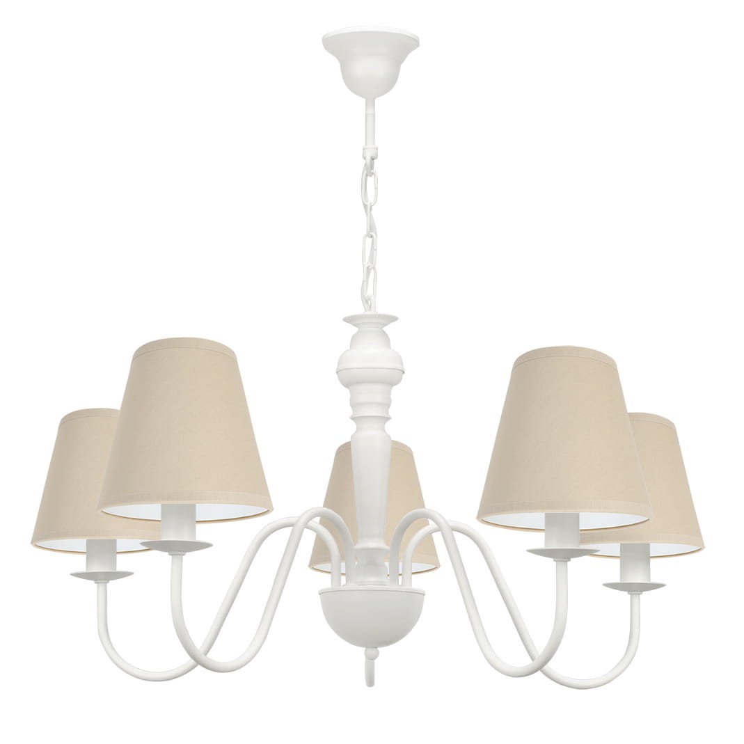 Żyrandol biały z beżowym kloszami GOLDSUN AB 1336G/26/03 5-ramienny