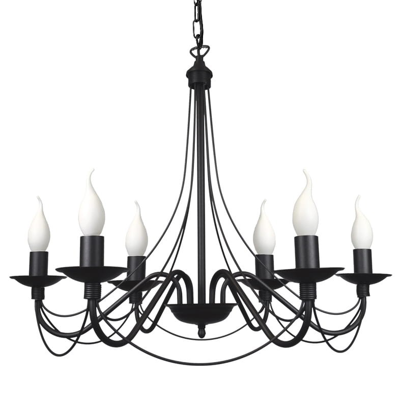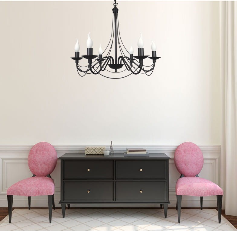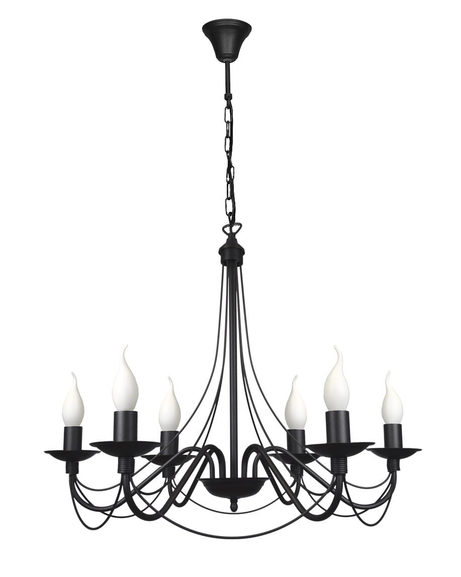 Piękny czarny żyrandol do salonu, w modnym stylu klasycznym. 6-ramienny żyrandol świecznikowy doda wnętrzu niesamowitego blasku i stylu. Wisząca lampa sufitowa przepięknie prezentuje się na tle klasycznych dodatków. Żarówki w kształcie płomienia świecy dodadzą urody temu wspaniałemu żyrandolowi.