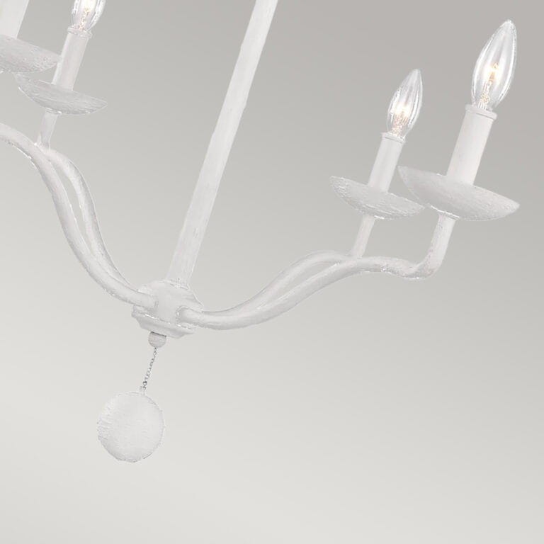 Żyrandol świecznikowy 4-płomienny do salonu w kolorze teksturowanej bieli. Czteroramienny biały żyrandol doskonale sprawdzi się w różnorodnych klasycznych i prowansalskich aranżacjach wnętrz. Delikatny i bardzo prosty nie przytłacza wnętrza ale pięknie dopełnia całość. Dzięki nieosłoniętym żarówkom doskonale doświetla przestrzeń, wprowadzając romantyczny klimat.
