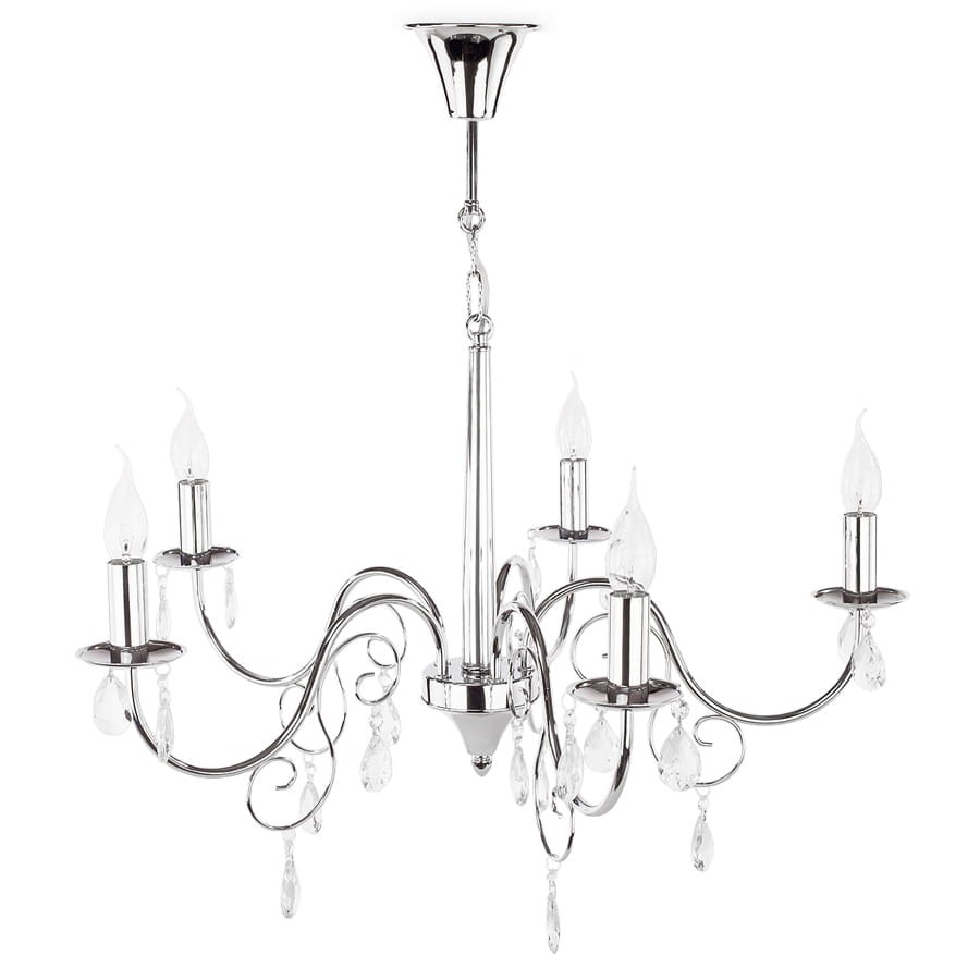 Żyrandol świecznikowy z kryształkami to model dedykowany do eleganckich wnętrz w stylu klasycznym lub francuskim. Chromowana konstrukcja została wzbogacona o drobne kryształki, które błyszczą pod wpływem odbitego światła.