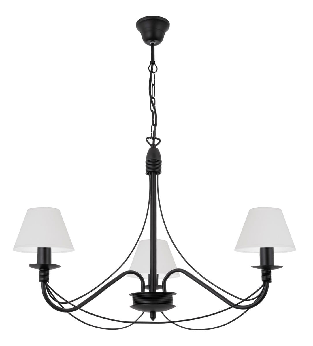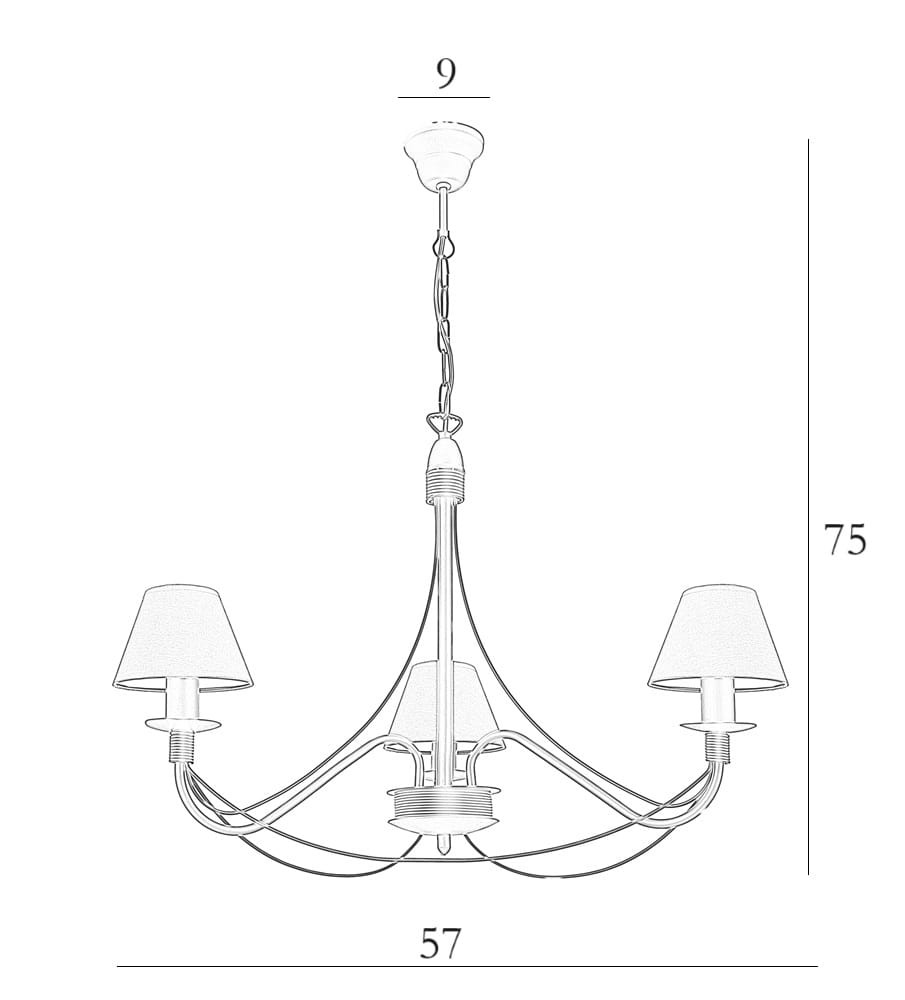 Elegancki klasyczny żyrandol 3-płomienny do sypialni lub do niewielkiego pokoju. Klasyczny żyrandol ze smukłym stelażem wykończony uniwersalnymi, ponadczasowymi białymi abażurami doda każdemu wnętrzu wyjątkowej elegancji i stylu. Idealny do wnętrz urządzonych w stylu klasycznym. Abażury wykonane z certyfikowanych materiałów.